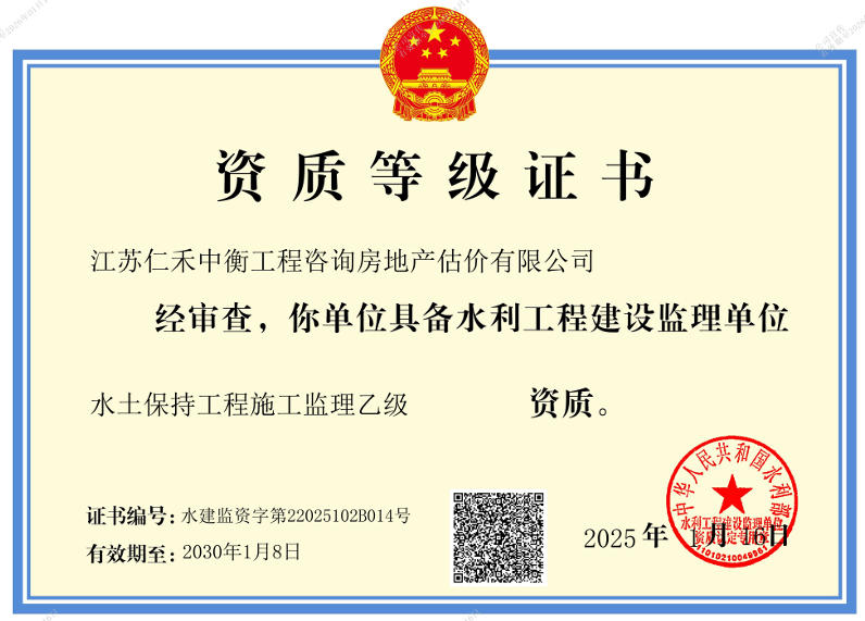 - 水利工程施工監理乙級證書